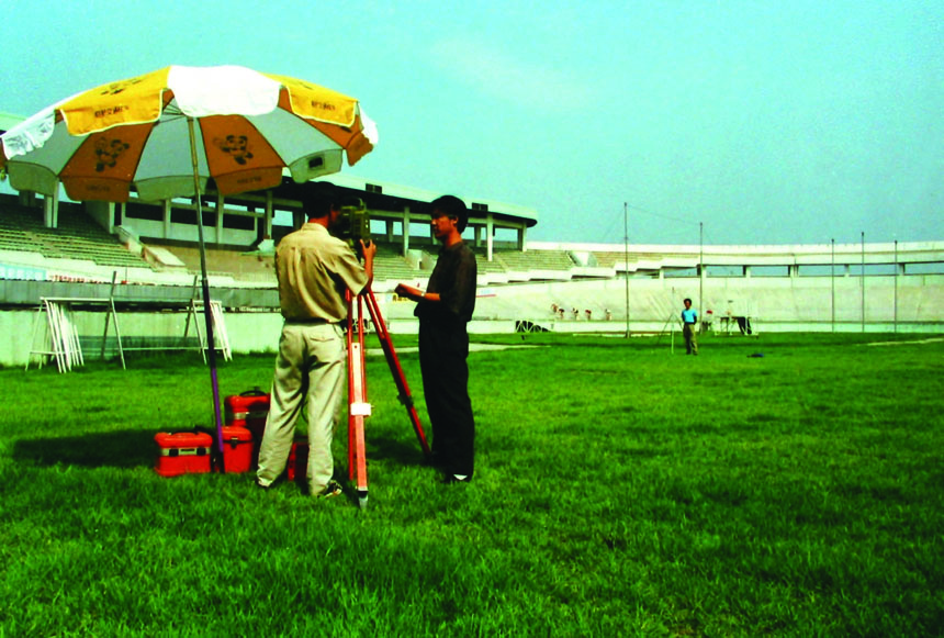亚运会昌平自行车赛场——特种精密工程测量 1990年北京亚运会场地自行车赛的比赛场地。赛道施工测量要求极高,必须使用精密仪器和特殊测量方法才能达到规定的精度。