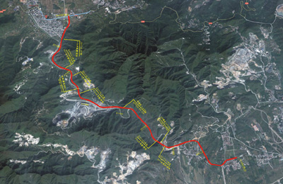 北京鲁坨路改建道路 ——地质灾害危险性评估、岩土工程勘察、工程测量 项目位于北京市的西南部山区,全长8.3公里,含多处桥梁和隧道,线路傍山势曲行,山间地形起伏较大,路基多须进行挖方或填方。国道通205深圳段改建工程
