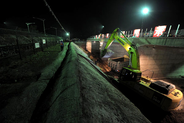 北京北苑东路下穿城铁顶进涵及城铁便线工程北京城铁运营来建成的第一条下立交城市道路。城铁便线在不影响运营条件下成功拨接,在国际尚属首例,监测中成功运用测量机器人自动化监测系统。