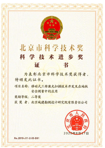 作为第一完成单位完成的《移动式三维激光扫描技术开发及在地铁安全测量中的应用》成果荣获北京市人民政府颁发的北京市科学技术奖二等奖,《重大基础设施结构形变精密三维测量技术与装备》及《南宁强透水复杂地层地铁深大基坑设计施工关键技术创新与应用》成果分别获得广东、南宁政府颁发的科技一等奖。其中南宁项目研究研究成果形成了一套包含地层力学参数与设计模式,基坑降水设计施工,深大基坑开挖等方面的技术体系,解决了圆砾层深基坑参数取值、施工渗漏水、降水及高效开挖等技术难题,是我院在南宁地铁工作研究10年来技术成果的重大突破,也为南宁轨道交通带来无限前景。
