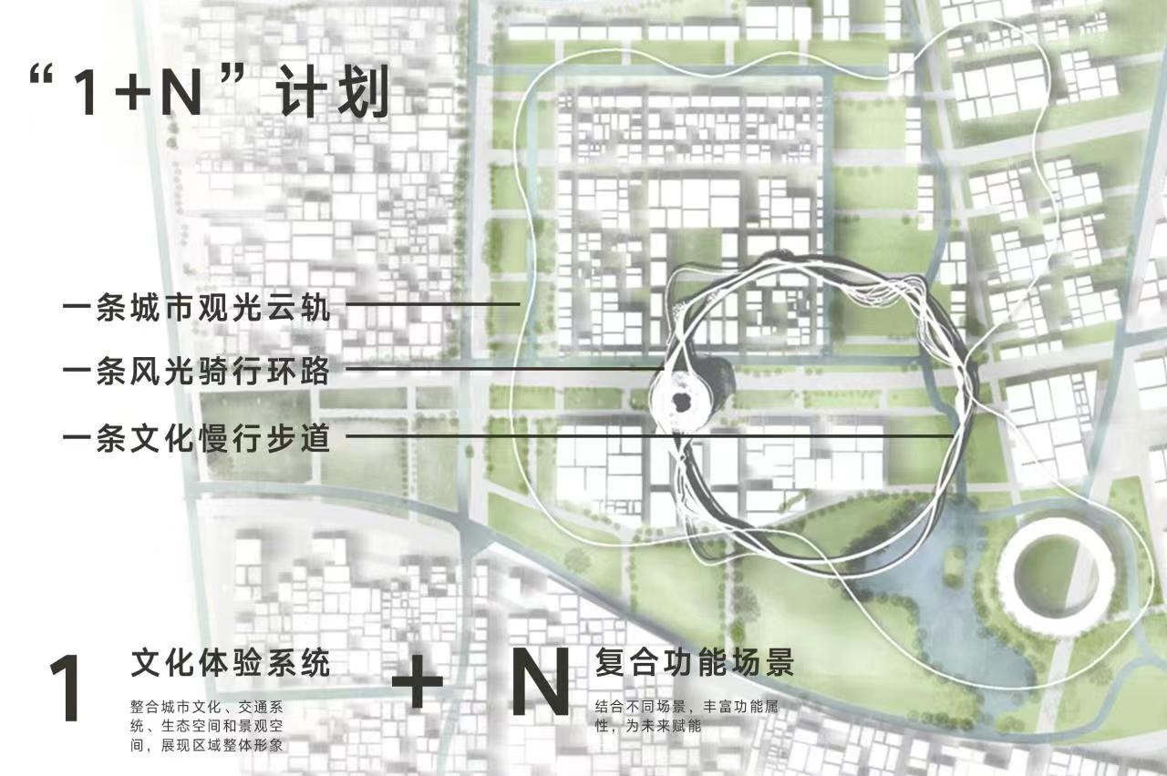 项目结合现有和未来可能的复合功能场景,建立新的城市文化体验界面,新界面以文化为媒介串联,承载了绿色低碳、创新消费、创新科技等复合功能,随着城市不断发展,系统也不断更迭和进化。