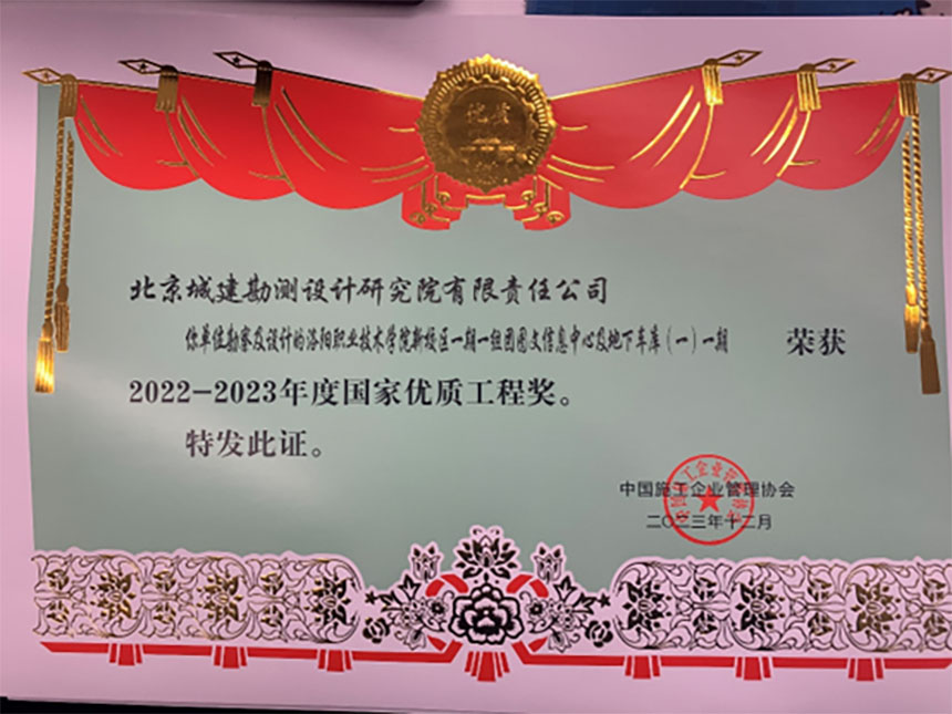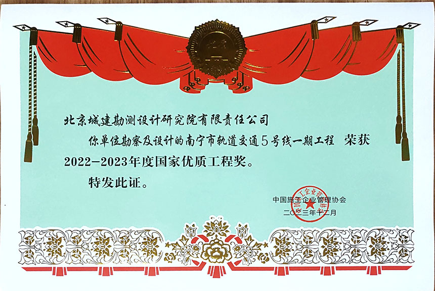 2022-2023年度国家优质工程奖获奖名单出炉,北京城勘院参与建设的5项工程榜上有名。“北京环球影城主题公园(一期)项目”获得国家优质工程金奖,“洛阳职业技术学院新校区一期一组团图文信息中心及地下车库(一)一期”“G4-1#酒店等6项(移动硅谷创新中心项目)”“济南市轨道交通R3线一期工程”“南宁市轨道交通5号线一期工程”4项重点工程获得国家优质工程奖。在公布的第二十届第一批中国土木工程詹天佑奖获奖名单中,北京城勘院参建的南宁市轨道交通3号线一期工程(科园大道-平乐大道)金榜题名。