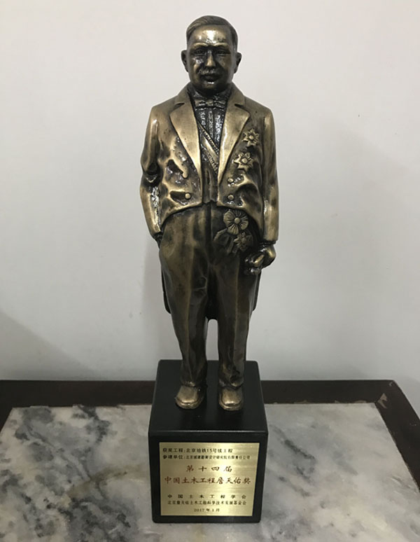 我院全程参与的北京地铁15号线工程于2017年4月首次获得詹天佑大奖。