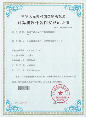 轨道交通不动产产籍信息管理平台V1.0(2013年)