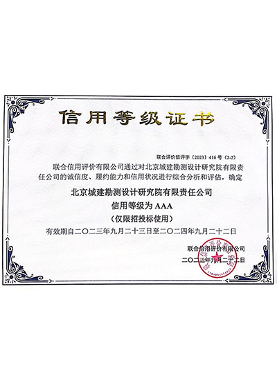 AAA级信用等级证书