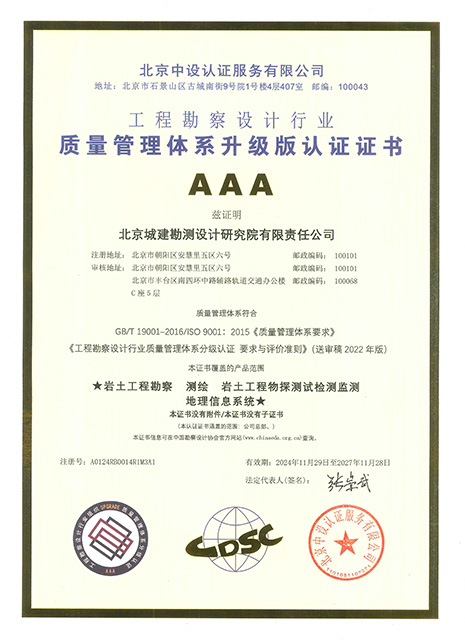 AAA质量管理体系升级版认证证书