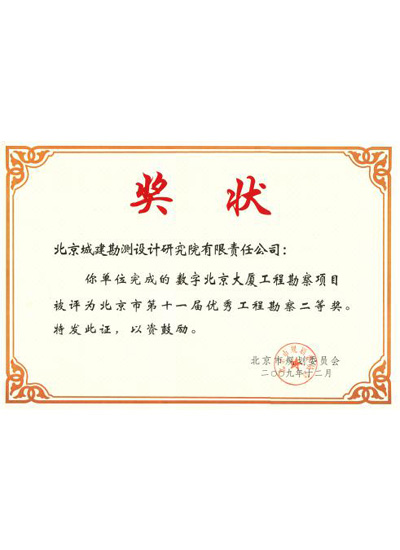 北京市第十一届优秀工程勘察二等奖(2009年)